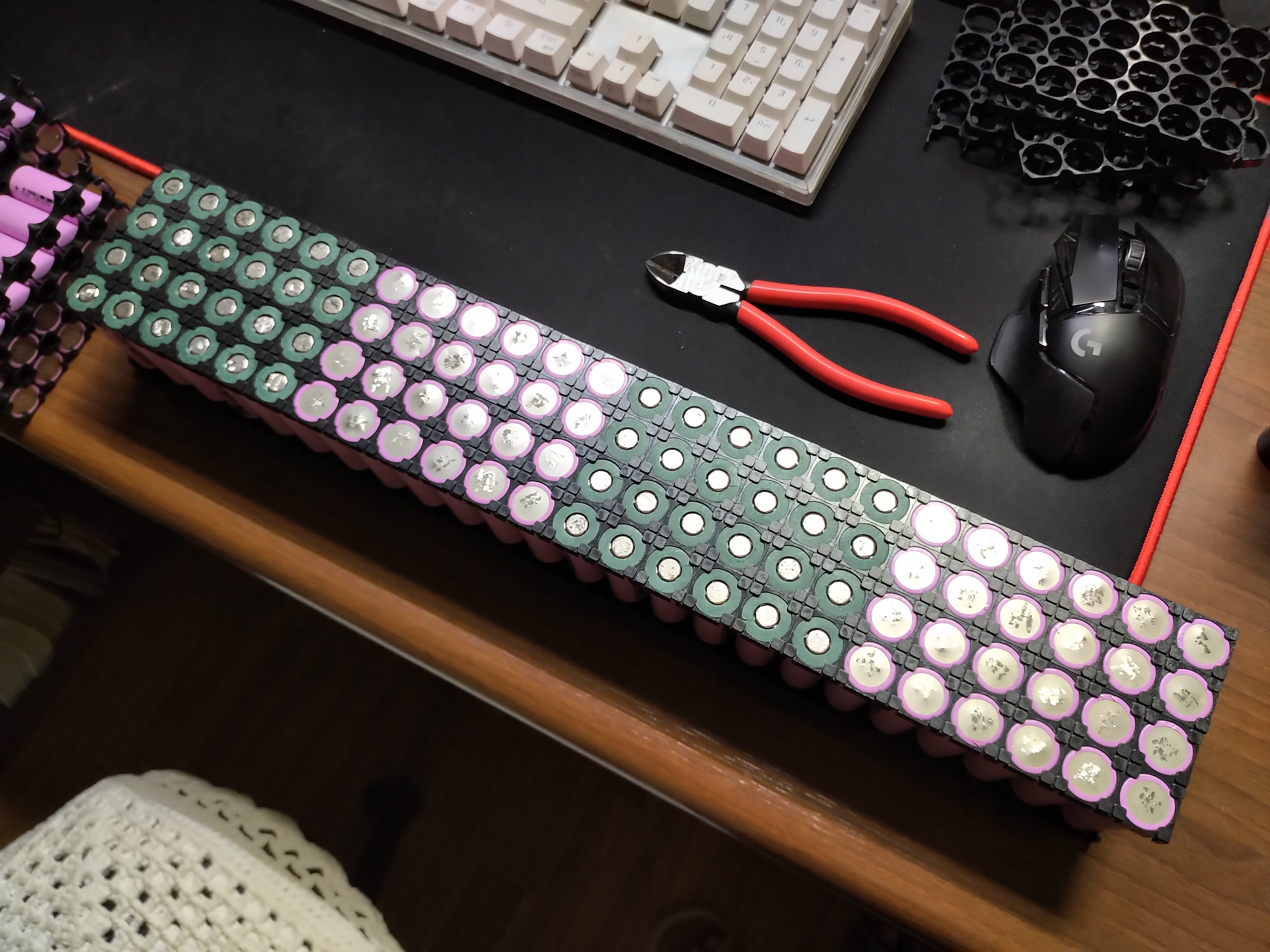 고장 난 킥보드에서 추출한 18650. 이번엔 96알을 쓰기로 했다. 8S12P로 제작 예정. 지속 방전율 3C, 피크 방전율 5C인 녀석이라 최종적으론 150A 까진 순간적으로 땡겨쓸수 있을 것이다