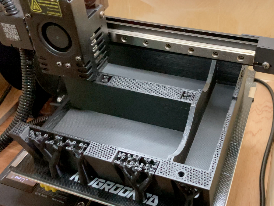 배터리 하부인클로져는 3D 프린터로 작업. ABS가 아니라 PLA+로 출력을 하기에 좀 두껍게 뽑았다. 배터리가 크다 보니 3번에 나눠서 뽑아야 했다. 그냥 대충 아무 케이스나 써서 데크 위에 얹는 게 가장 편한 방법인데 왜 고생을 사서 하는지..
