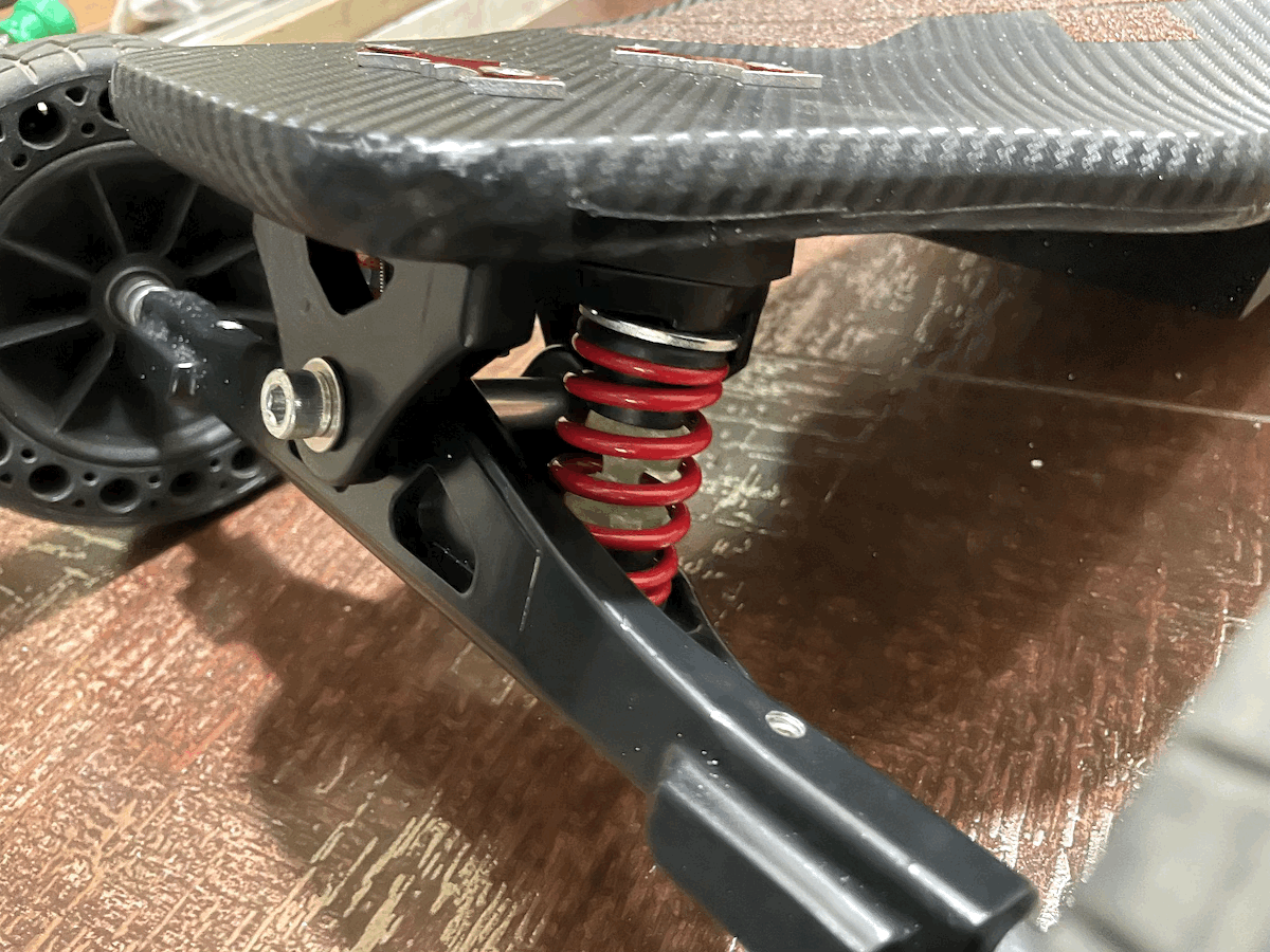 사실 배터리 케이스를 새로 만들어서 데크 위쪽으로 올리는 게 가장 확실한 방법이지만. 번거로우니 스페이서를 넣기로 했다. 고무판과 pvc 패드로 18mm 정도 되는 스페이서를 만들었다.
