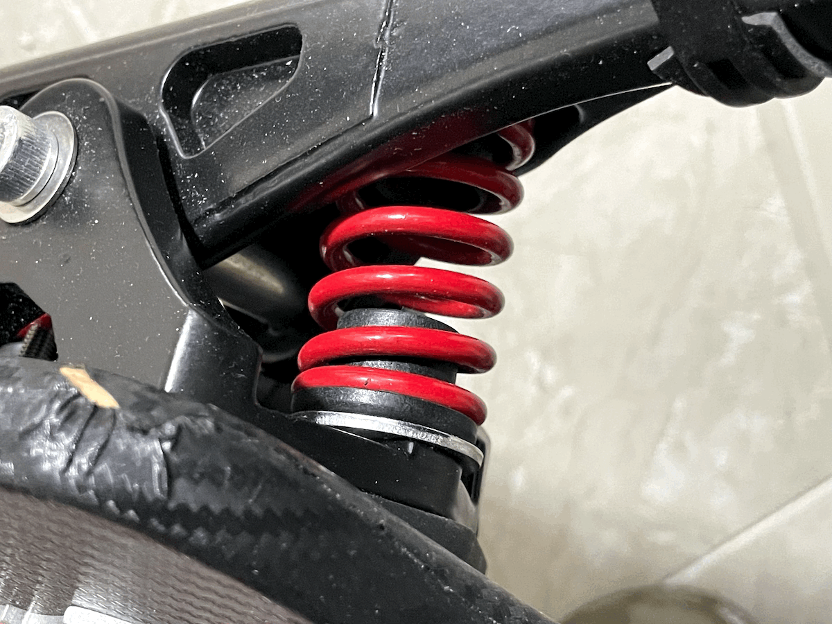 스프링 까지 장착완료. 이 작업을 하기 위해서는 클램프가 필수이다. 스프링 끼우고 빼는 게 예삿일이 아니기에.. 어쨌든 시운전을 해보니 고속에서의 안정감이 대폭 향상되었다. 굿.