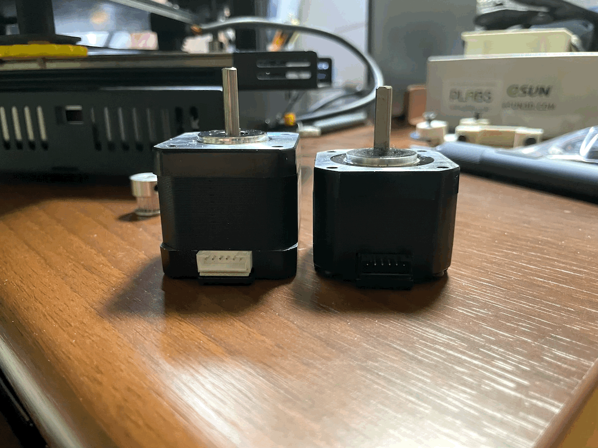 좌측이 이번에 교체할 SL의 nema17 40mm 모터. 내써팝에서 구매를 했다. 우측은 순정 킹룬 모터. 모터는 일단 사이즈가 클수록 힘이 좋은 경우가 대부분이라 확실히 순정보다는 나을 것이란 기대를 해본다. 킹룬의 경우 Y축 모터가 베드 무게와 출력물 무게를 모두 감당해야 하는데 순정모터로는 토크가 부족해서 종종 탈조가 일어났던 것으로 예상된다.