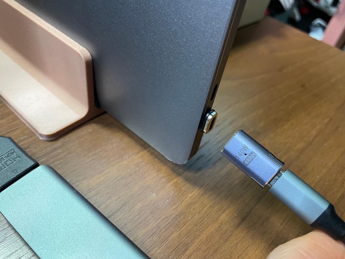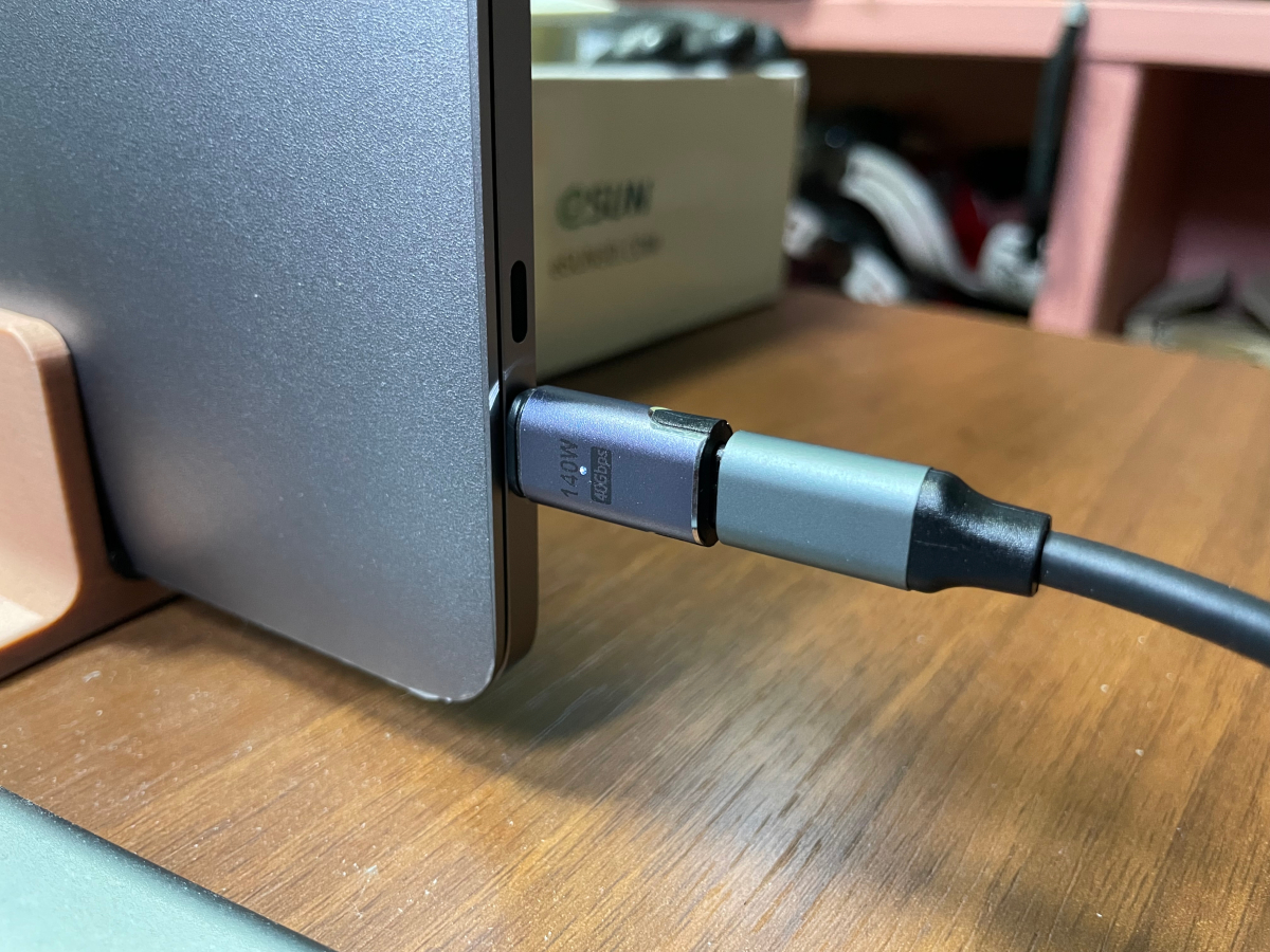 이렇게 단자 분리가 된다. 다만 USB C타입 전용으로 micro usb 혹은 라이트닝 8핀 단자는 따로 판매를 하지 않는다. 충전속도 140W, 전송속도 40Gbps를 지원한다. 썬더볼트3 규격도 만족하는 셈.