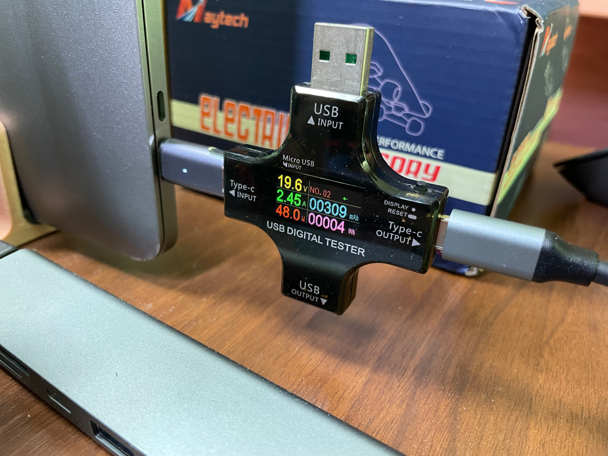 USB PD 충전도 잘 된다. 집에서 쓰는 충전기의 한계 때문에 48W까지 밖에 확인을 하지 못했지만 스펙상 140W까지 지원하니 충전기만 받쳐준다면 잠깐잠깐 꽂아서 급속충전용으로도 괜찮을 듯.