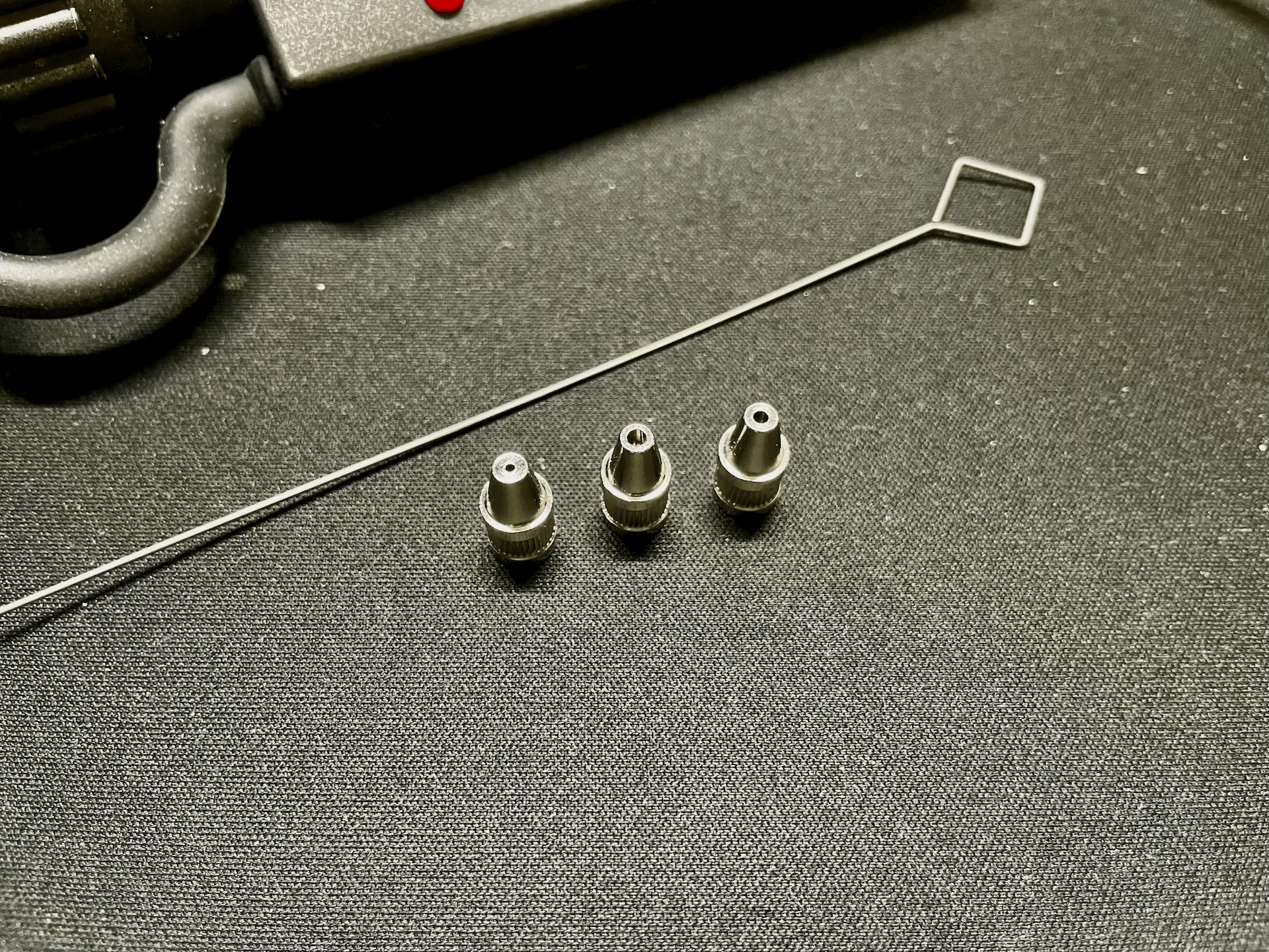 흡입 노즐은 장착되어져있는것을 포함해서 총 4개로 구성되어 있다. 납땜제거를 하려는 핀의 두께에 맞게 바꿔 끼우면 된다.