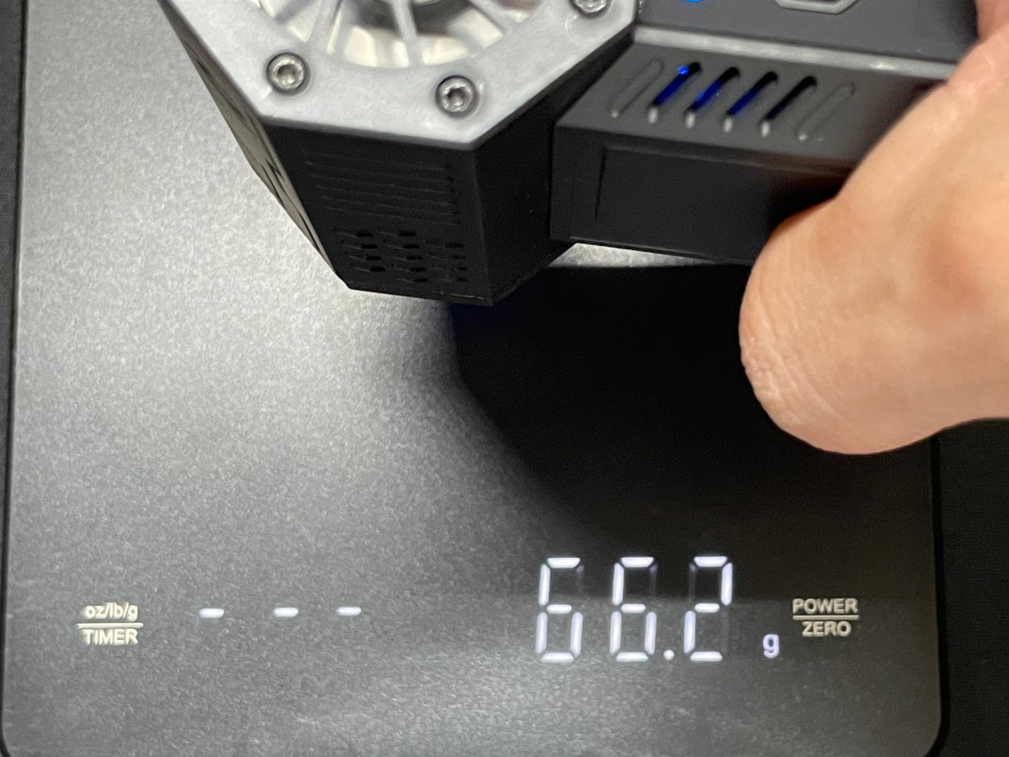 최대세기로는 140g 정도까지 확인을 했는데 가까이 대고 쏘니 반발감이 느껴질 정도로 파워는 충분했다.