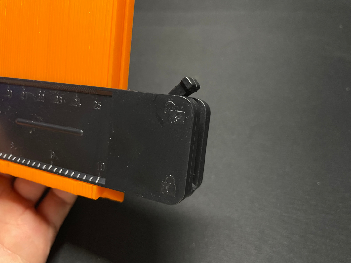 이 제품은 측정 후 게이지를 움직이면서 측정값이 틀어지지 않게 락을 걸 수 있게 잠금장치가 있는데