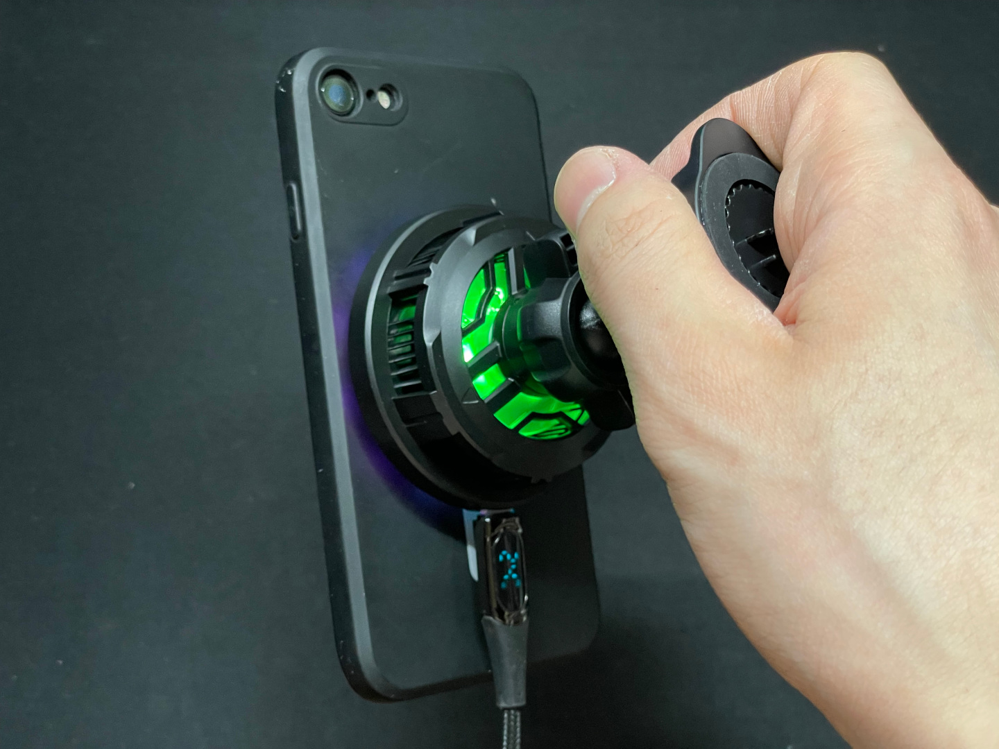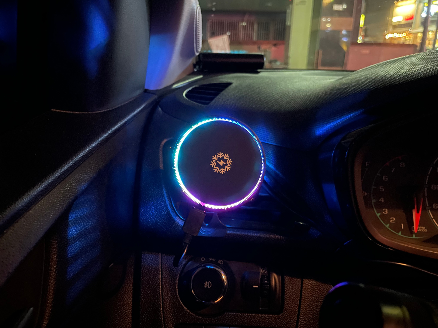 USB 전원을 인가하면 이렇게 LED에 빛이 들어오며 쿨링팬이 돌기 시작한다. 소리는 꽤 부드럽고 크지 않다. 차량 내부에 설치 시 시동을 끈상태라면 팬소리가 미약하게 들리지만 시동을 걸고 난 뒤에는 전혀 들리지 않는다.