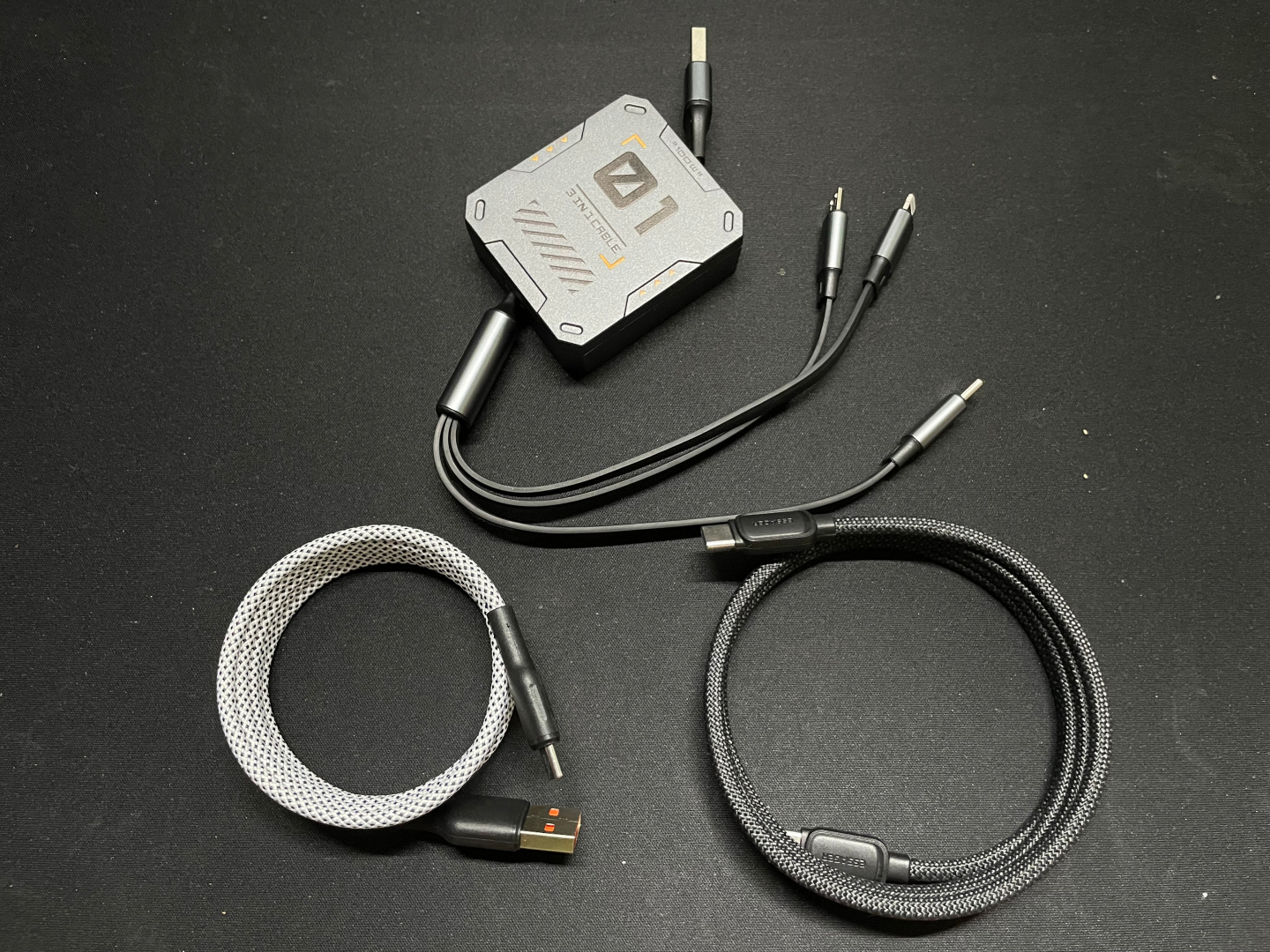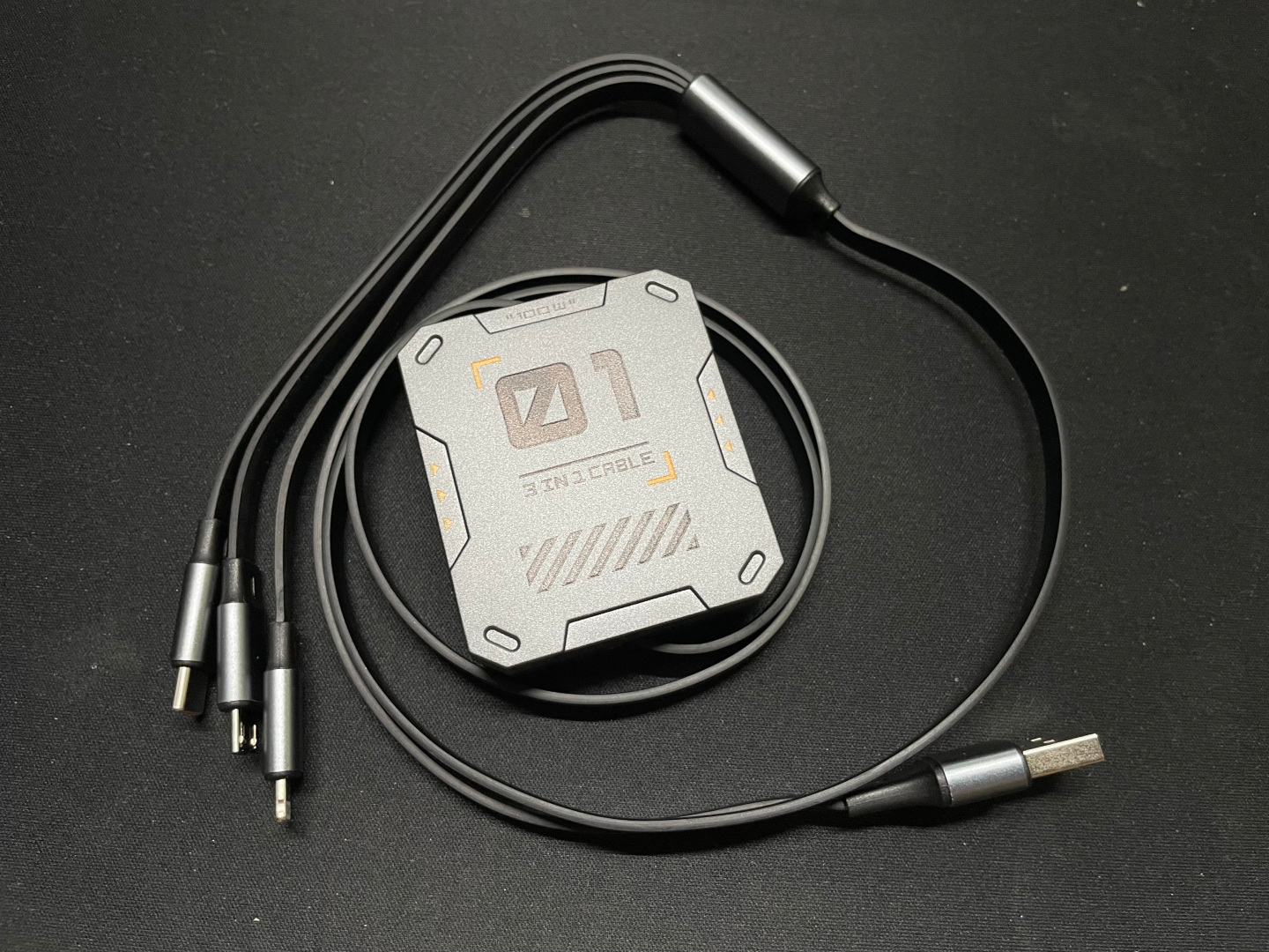 다음으로 릴방식의 USB 3 in 1 100W 케이블. 라이트닝, 마이크로 5핀, c타입 테이블이 달려있다.