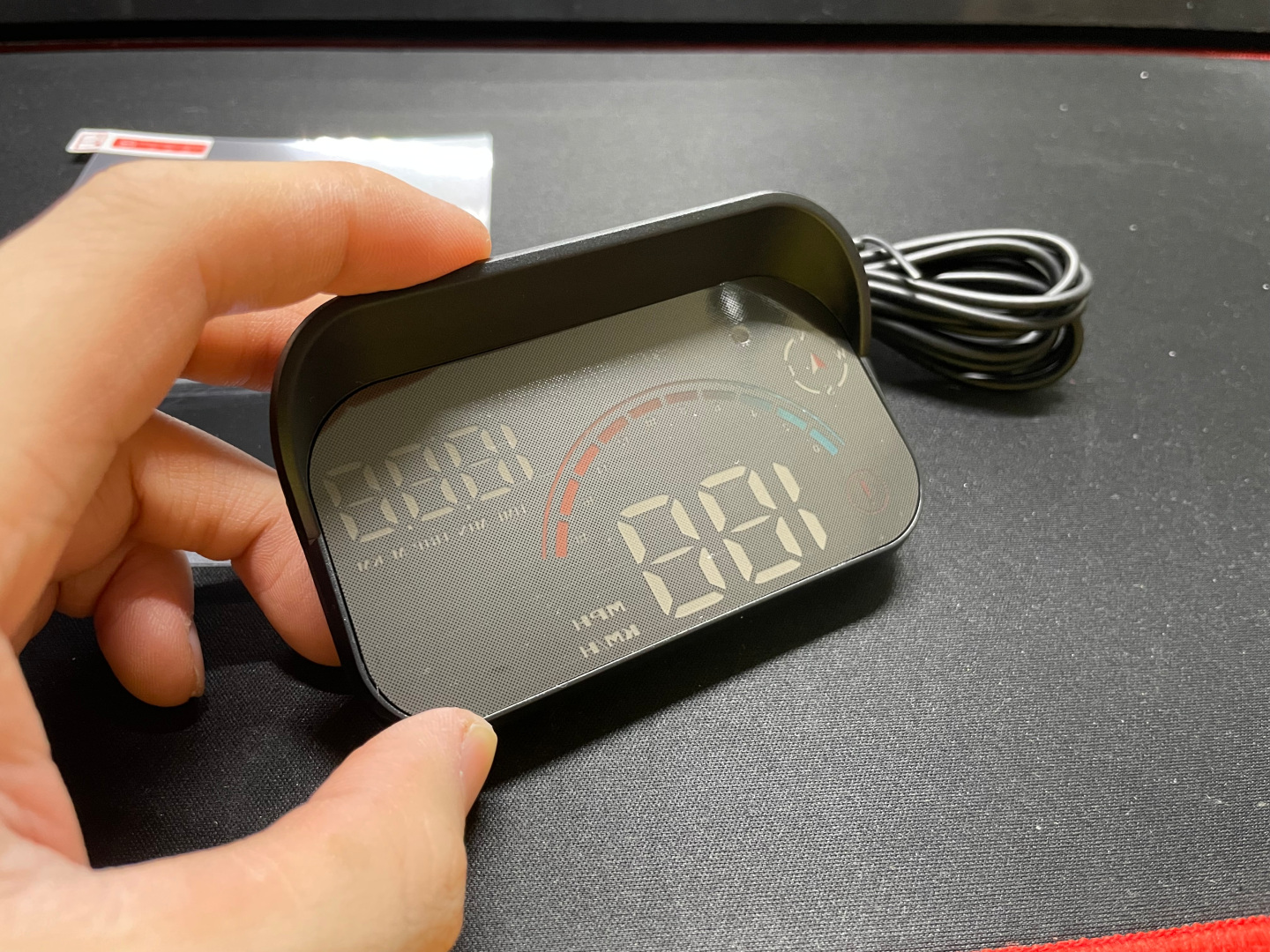 실사용을 해보니 동봉된 반사필름을 사용하지 않아도 주간에 엄청 잘 보인다. 사진에서는 조금 흐릿하게 나왔지만 실제로 보면 숫자와 그래픽 모두 깔끔하게 잘 나온다.