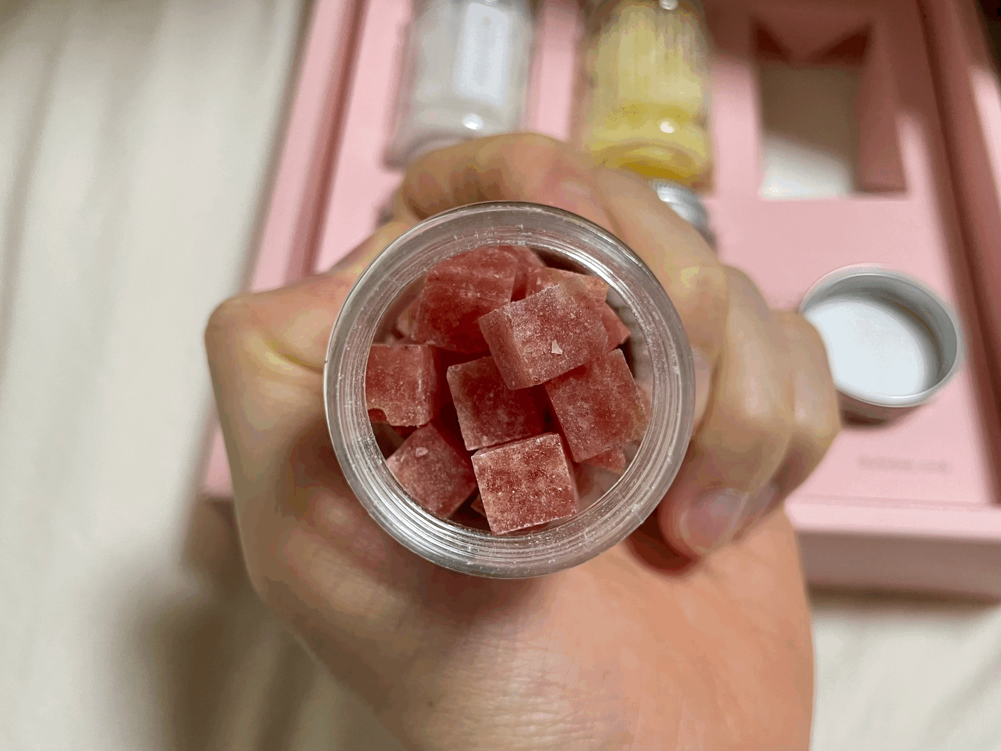 일단 녹여먹으면 시간이 꽤 걸리는 편인데 씹어서 깨뜨리면 가루가 되어 순식간에 입에서 사라진다. 색깔별로 맛과 단맛의 정도가 다르다. 개인적으로는 레몬맛이 1순위, 체리맛이 2순위, 초콜릿맛, 페퍼민트향은 그냥 그랬다. 페퍼민트향은 흔히 아는 자일리톨 껌맛이 나고, 자일리톨 100%짜리 투명한 캔디는 정말 아무 맛도 느껴지지 않는다. 입가심용 그 이상 이하도 아닌 듯하다.