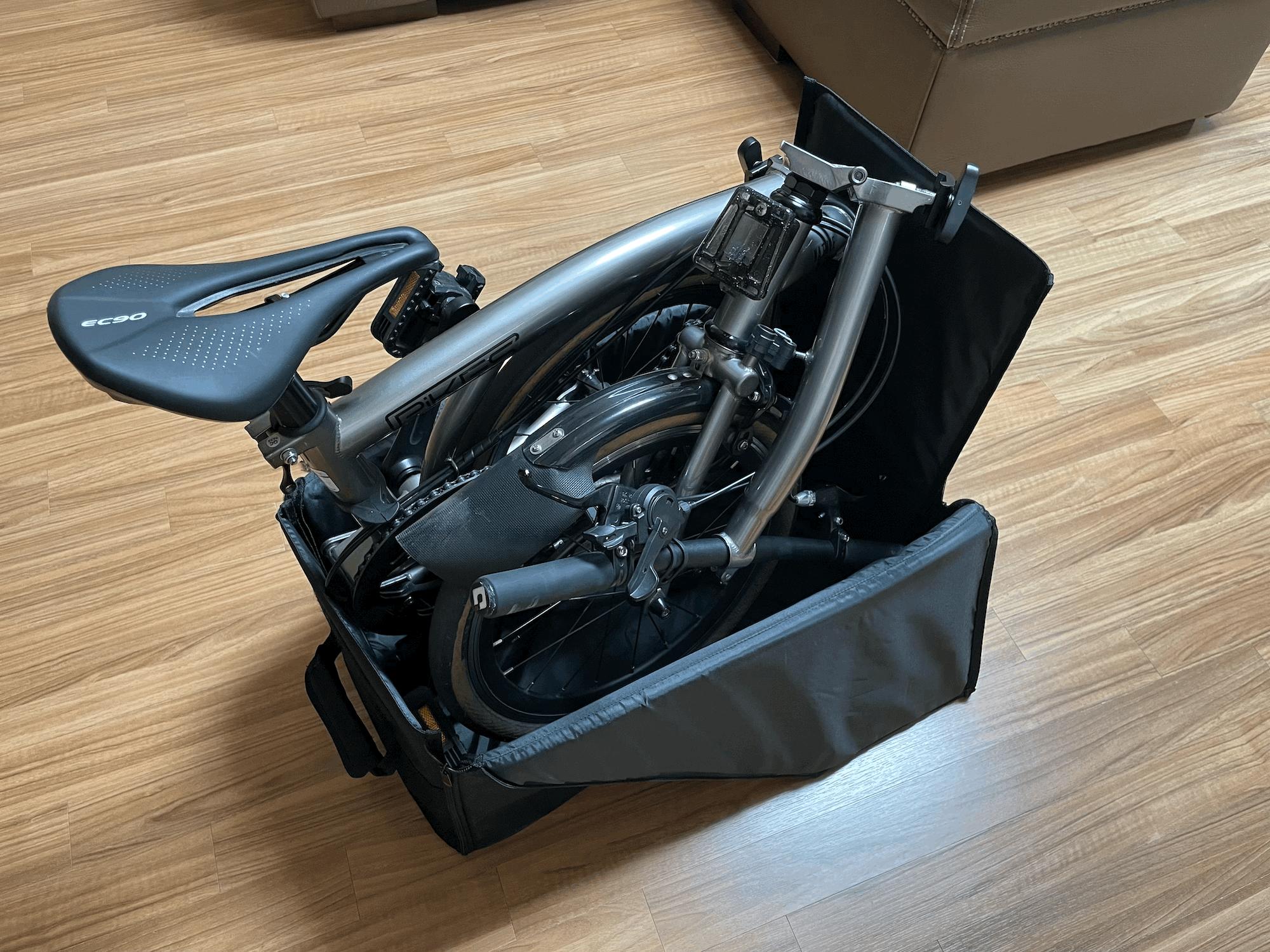 말그대로 '적재'를 위한 수납용도가 아니라면 뚜껑 달린 캐리어 형태의 브롬톤 보관함 말고 이 제품만 있어도 충분이 활용이 가능할 것 같다. 재질은 플라스틱판 + 쿠션으로 되어있어서 외부충격으로부터 자전거가 스크레치나 대미지 입는 것을 방지할 수 있다. 먼지 커버도 추가로 구매할 수 있는 옵션이 있고, 조금 더 큰 사이즈도 판매하고 있으니 유사브롬톤류 트라이폴드 자전거를 차에 싣고 다니는 용도로 매우 추천한다.