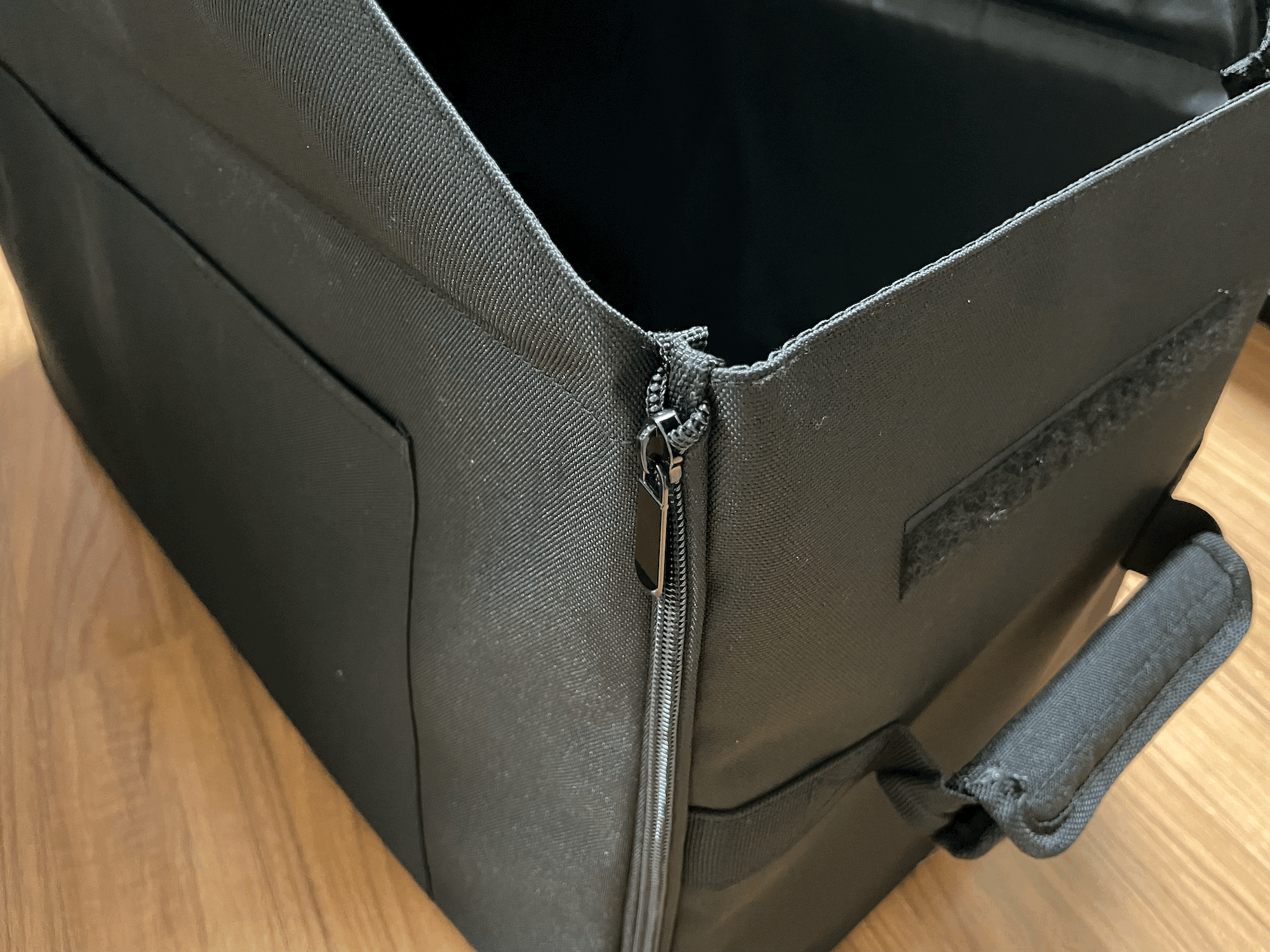 수납함 조립은 모서리를 지퍼로 잠그는 방식. 보통 이런 접이식 제품들은 모서리를 벨크로로 고정하는 타입이 많은데 지퍼가 훨씬 고정이 잘되고 모양 잡기도 편리해서 좋다.