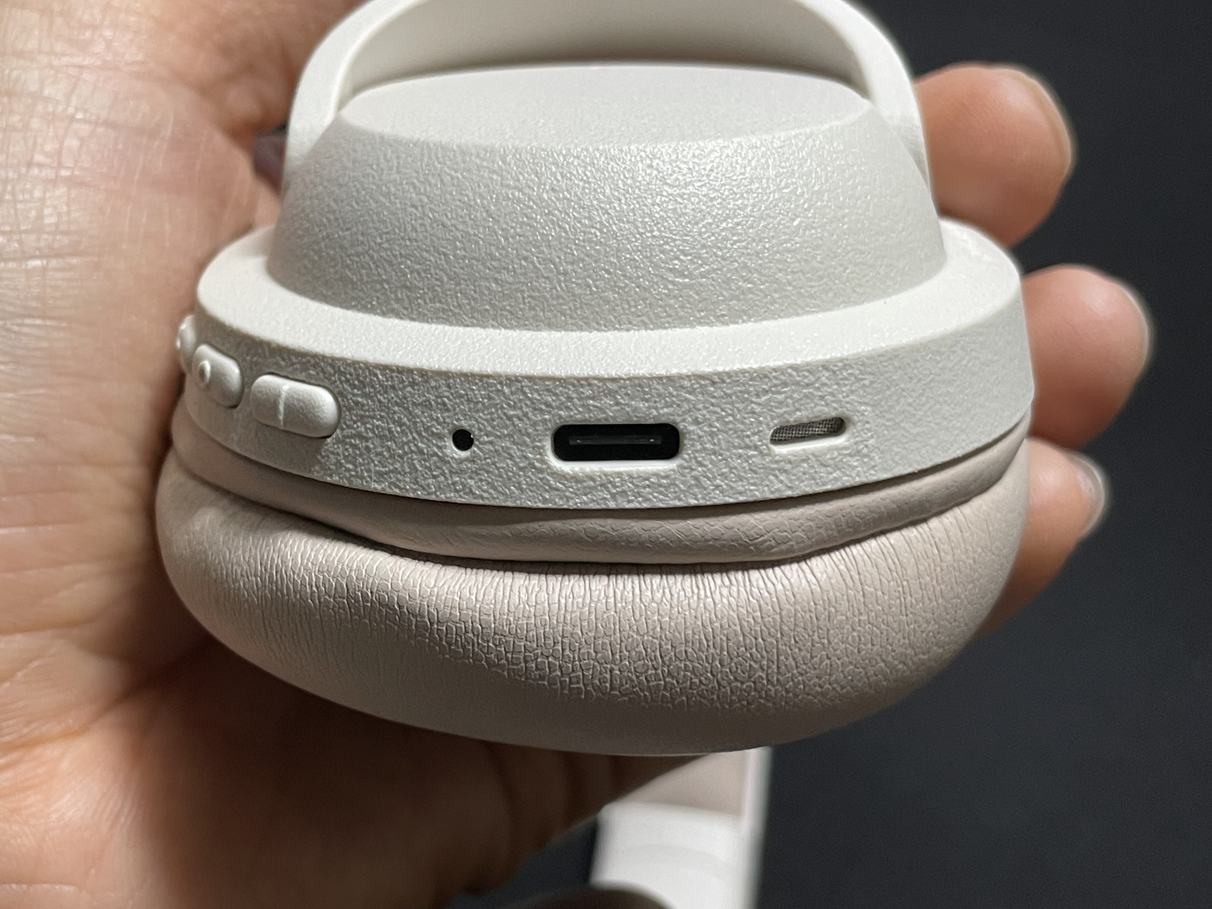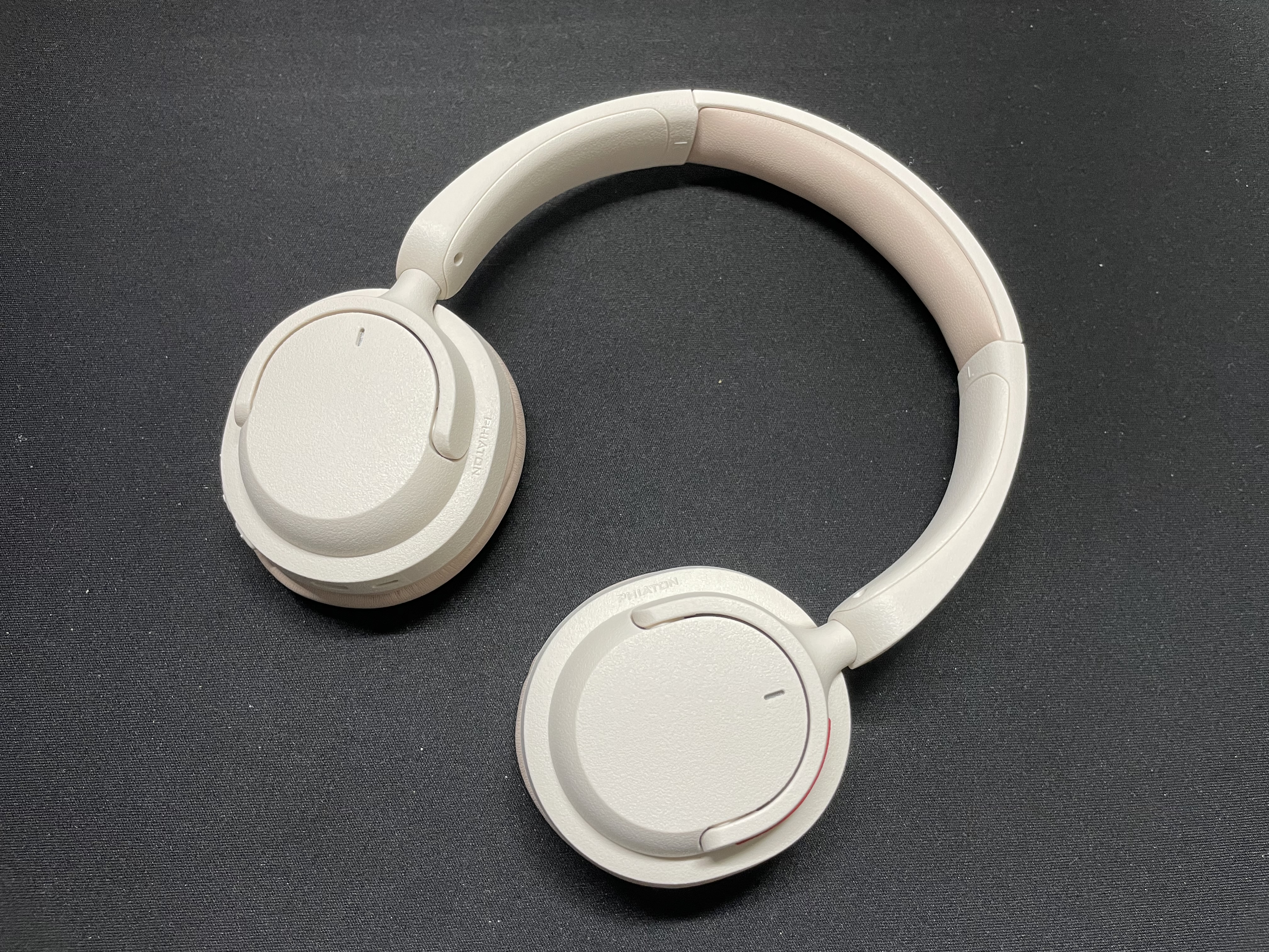 베이지 색상인데 이어 패드와 헤드밴드의 쿠션이 연핑크색이라 매우 잘 어울린다. 30mm 드라이버를 채용한 온이어 방식이라 유닛이 작은 편이고 플라스틱 재질로 되어있어서 무게도 약 150g 정도로 가벼운 편.
