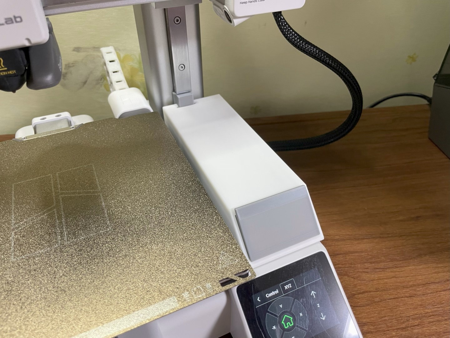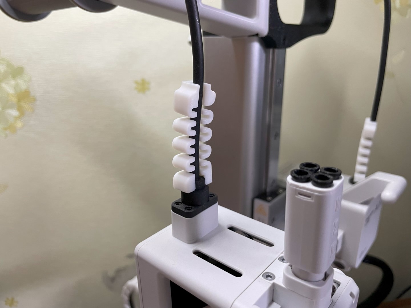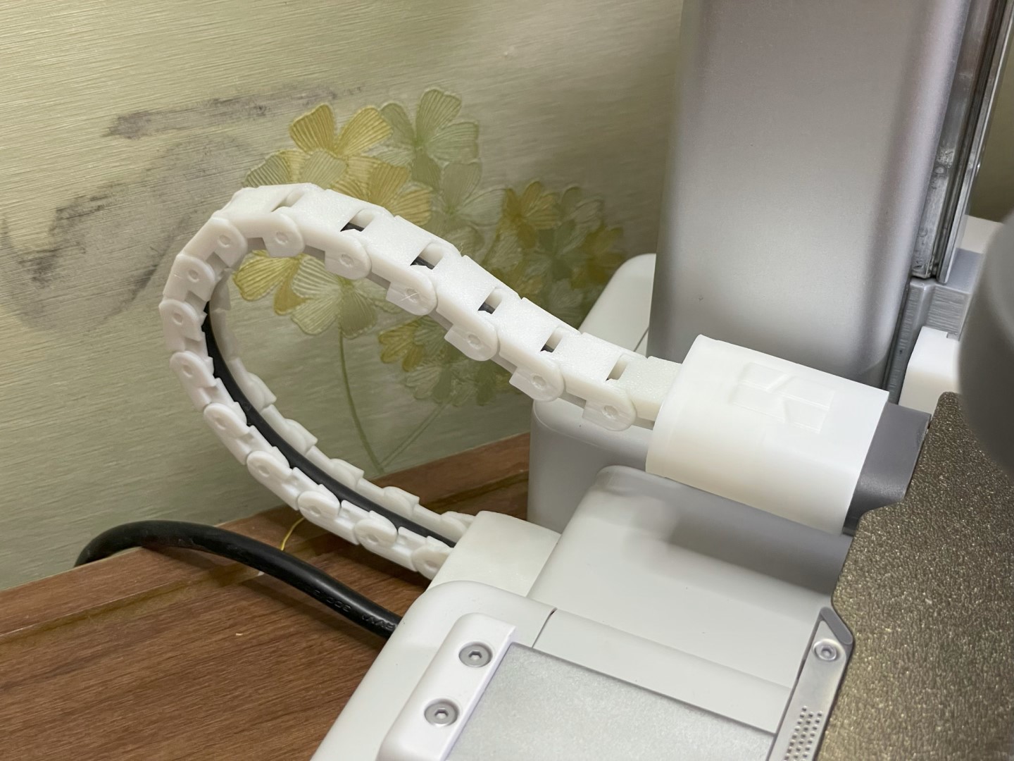 히팅베드 케이블 가이드 체인. 아무래도 베드슬링거 타입이기에 케이블이 앞뒤로 움직이다 보면 손상이 가는 경우가 생길 수가 있다. 특히 프린터 뒤쪽 공간이 부족하다면 케이블이 이리저리 꺾여서 단선 위험이 발생할 수 있는데, 가이드 체인을 장착해 두면 케이블 보호에 도움이 된다.