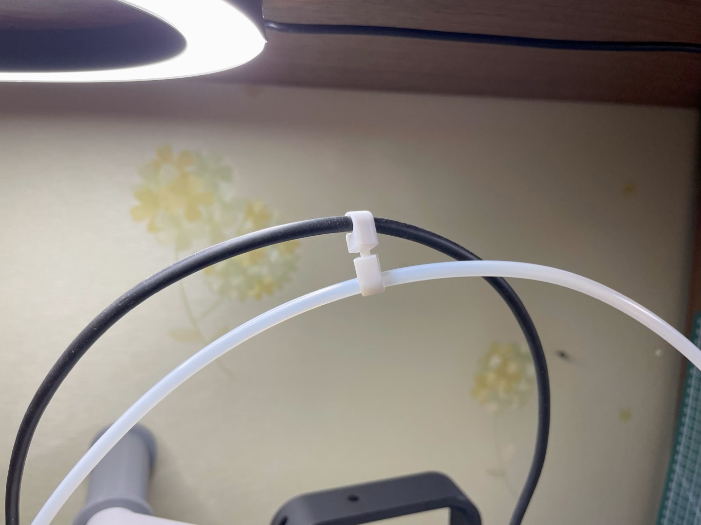 PTFE 튜브 클립. 핫엔드에 연결되는 케이블과 PTFE 튜브를 잡아서 깔끔하게 선정리가 가능하다.