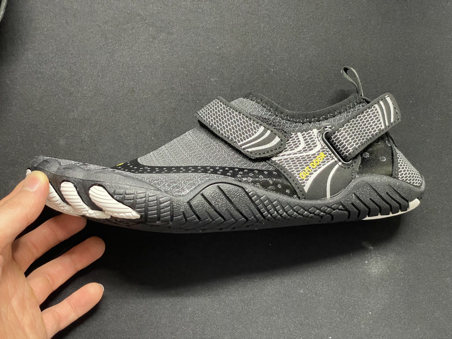 비브람 파이프핑거스의 느낌이 살짝 나는 형태의 밑창. 발가락 부분의 아웃이 특이하다.