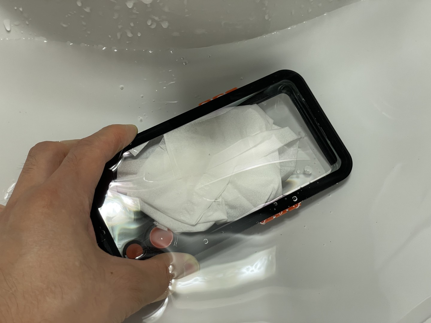 방수기능은 확실하다. 이제 스마트폰을 넣어볼차례