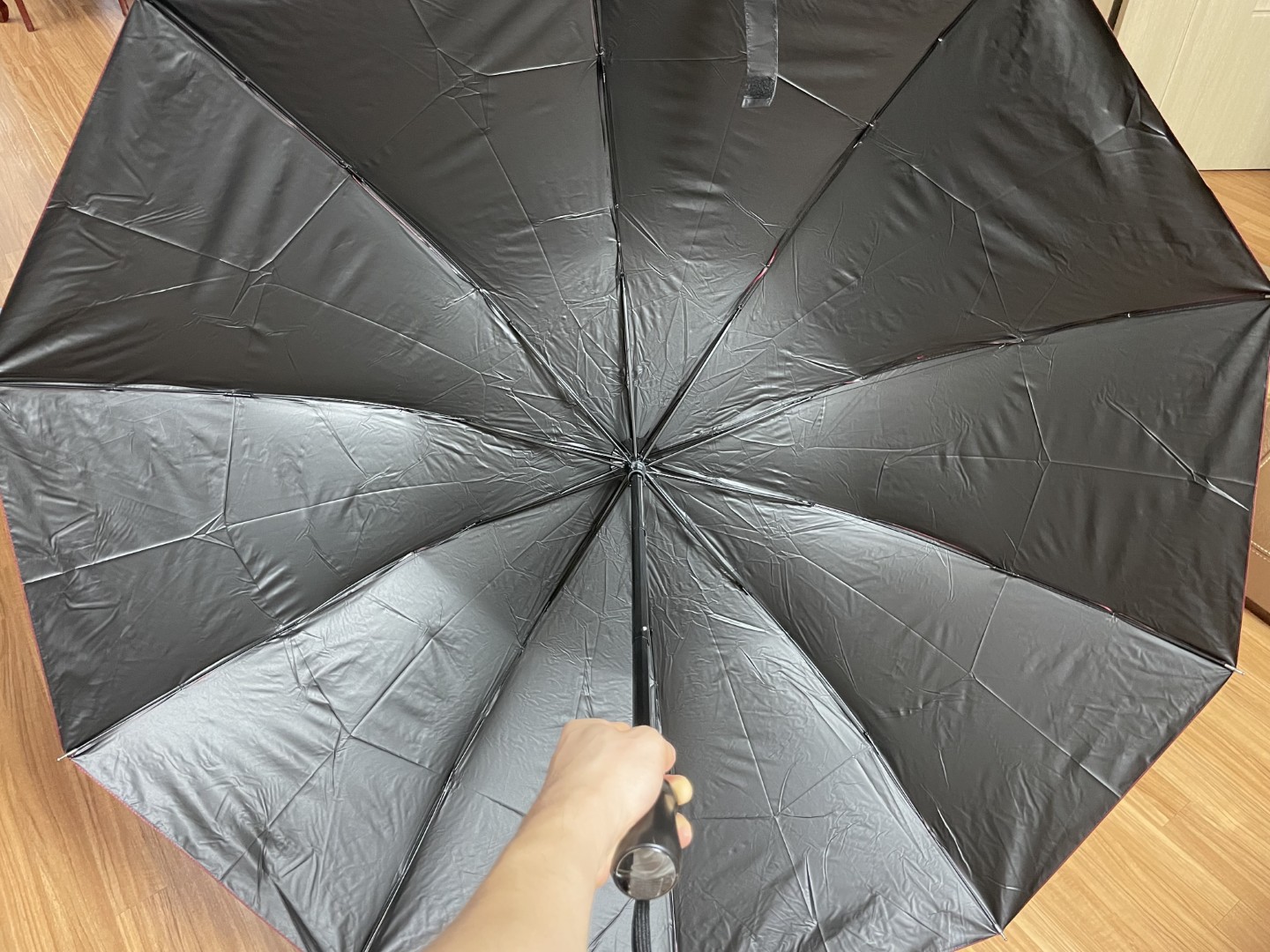 안쪽면은 검은색으로 암막처리가 되어 있다. 자외선 차단이 되니 햇빛이 쨍쨍한 날 양산대신으로 쓰기에도 좋아 보인다.