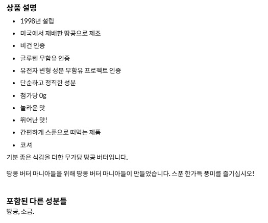 이번에 아이허브 쇼핑을 하면서 피넛버터앤코 땅콩버터도 함께 주문을 했다. 스무스 버전과 크런치 버전이 있는데 곱게 갈린 스무스 버전은 취향이 아니라서 씹는 맛이 있는 크런치 버전으로 구매를 했다.