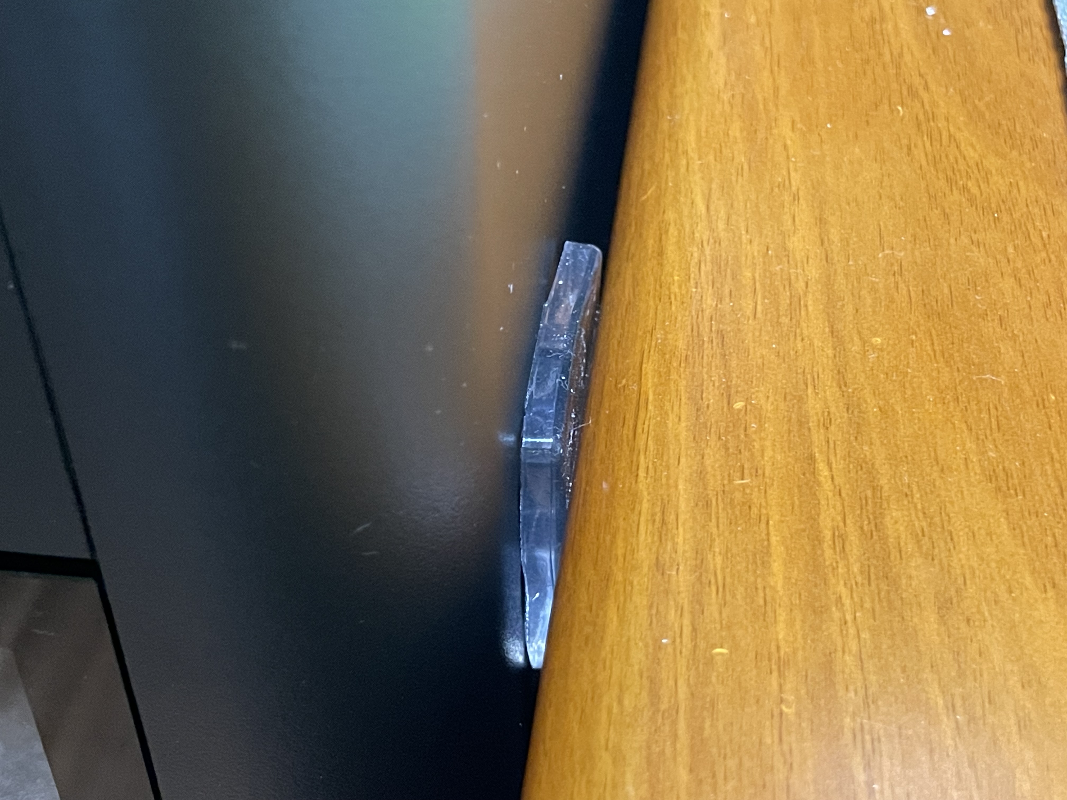 기기 자체의 진동음을 줄이기 위한 목적이라 측면부를 고정 하기로 했다. 프린터 옆에 나무 프레임이 있어서 실리콘 패드를 부착 후에 바짝 붙여 주었다.