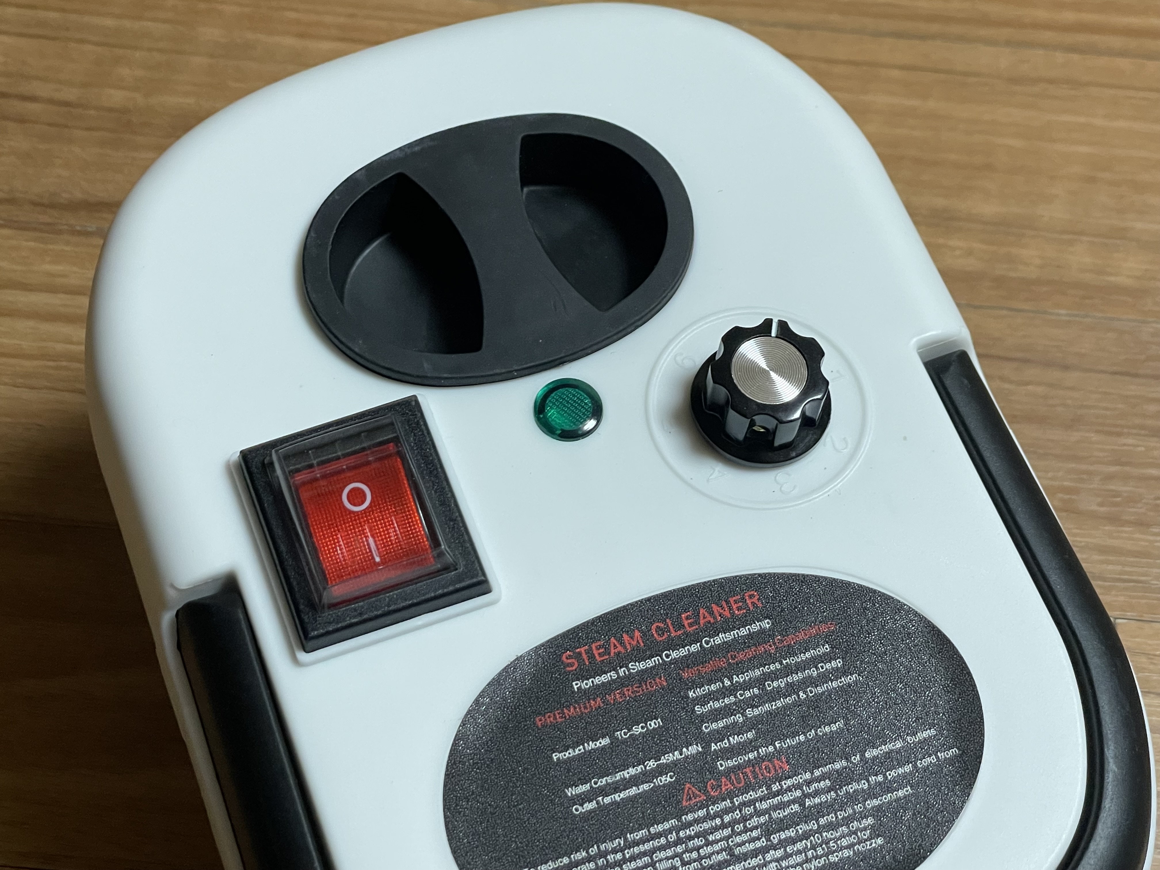 본체는 심플하다. 전원버튼과 스팀분사량 조절 다이얼이 끝.