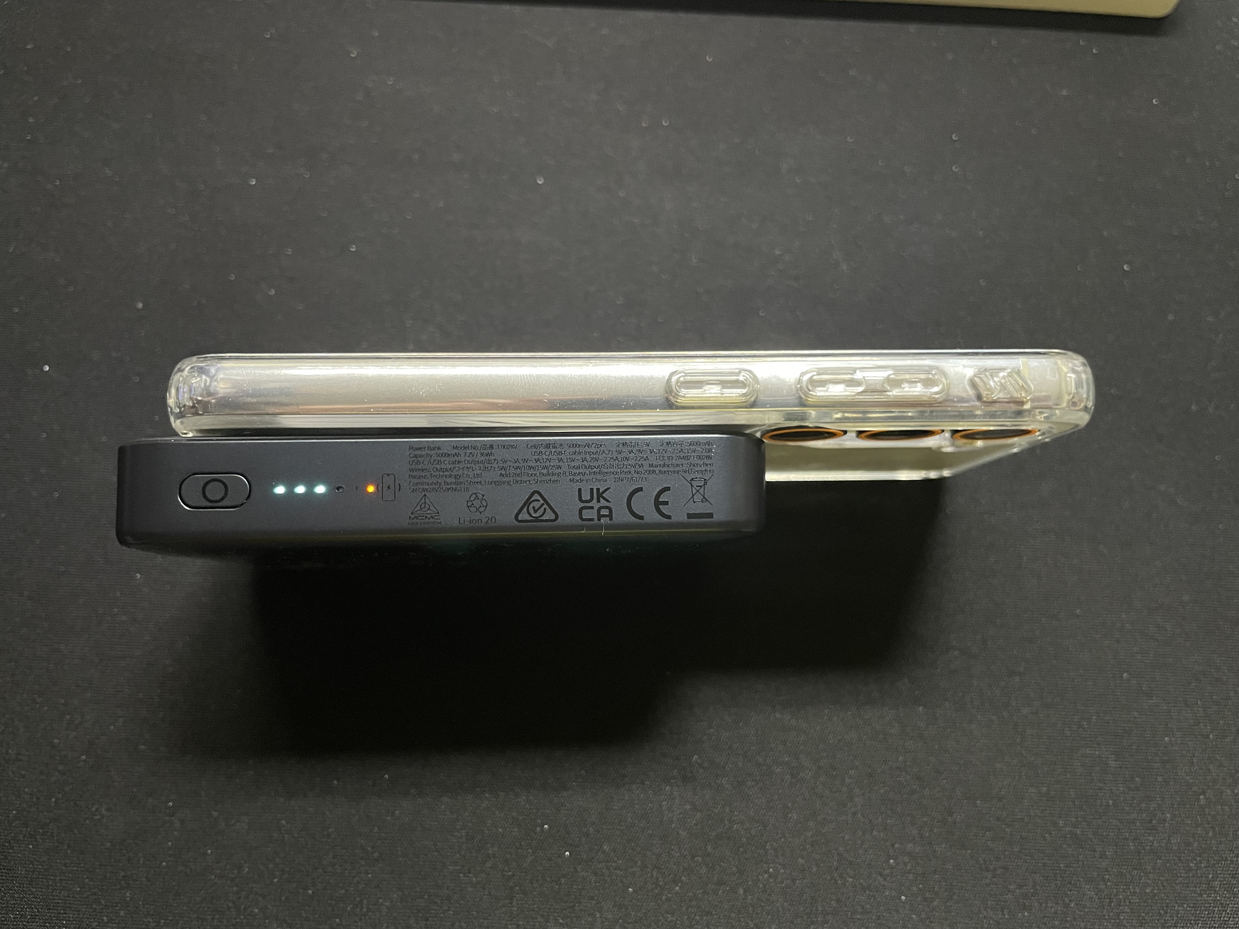 가장 중요한 맥세이프 충전. qi2.2 규격으로 최대 25W 무선충전이 가능하다. qi2 만 지원하는 제품은 15W로 충전이 된다.