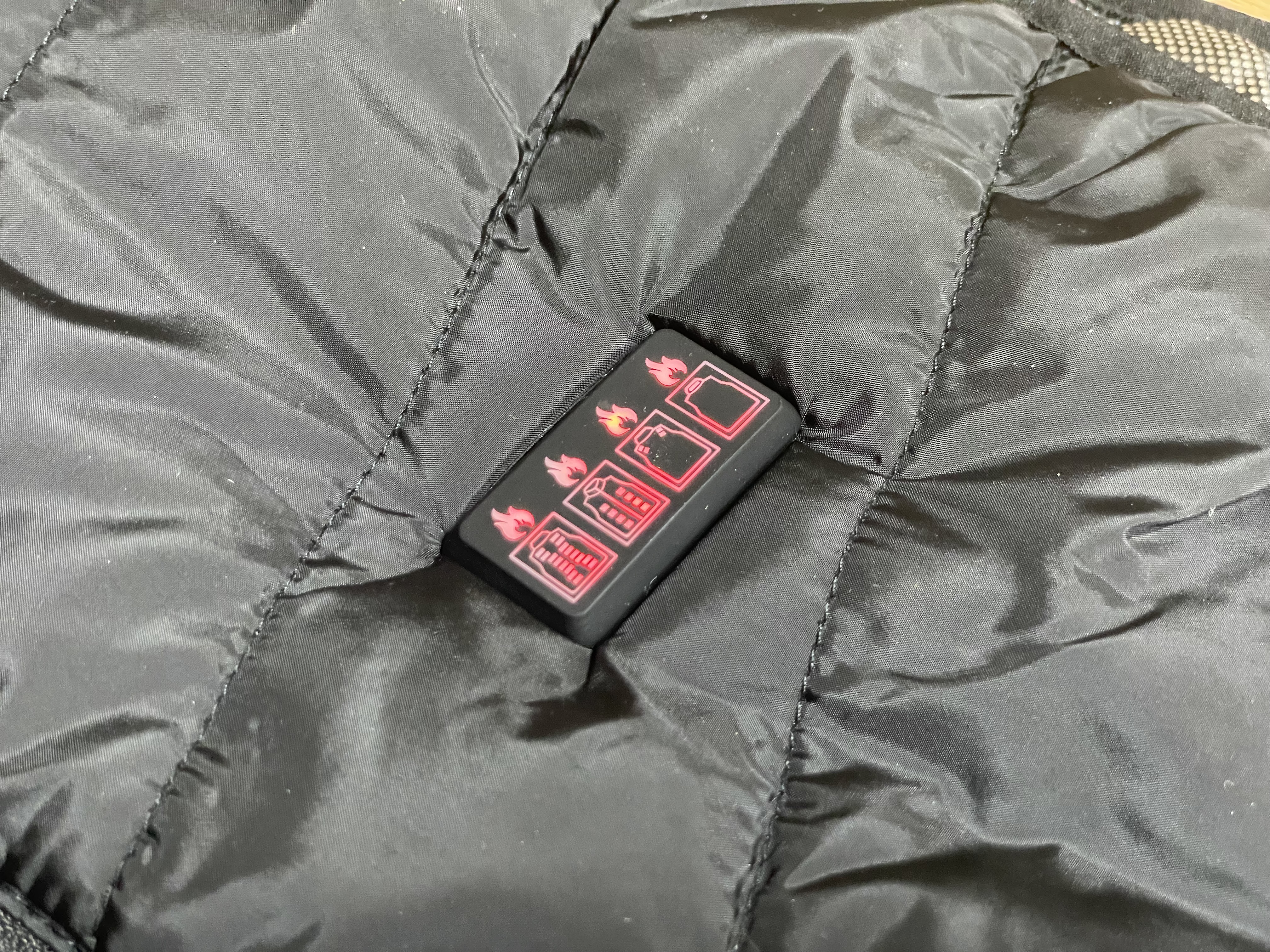 왼쪽 가슴의 전원 버튼으로 온도 컨트롤이 가능한데, 뒷면 / 앞면 / 목 / 어깨 네 부분 각각 따로 3단계 온도로 조절이 가능하다.