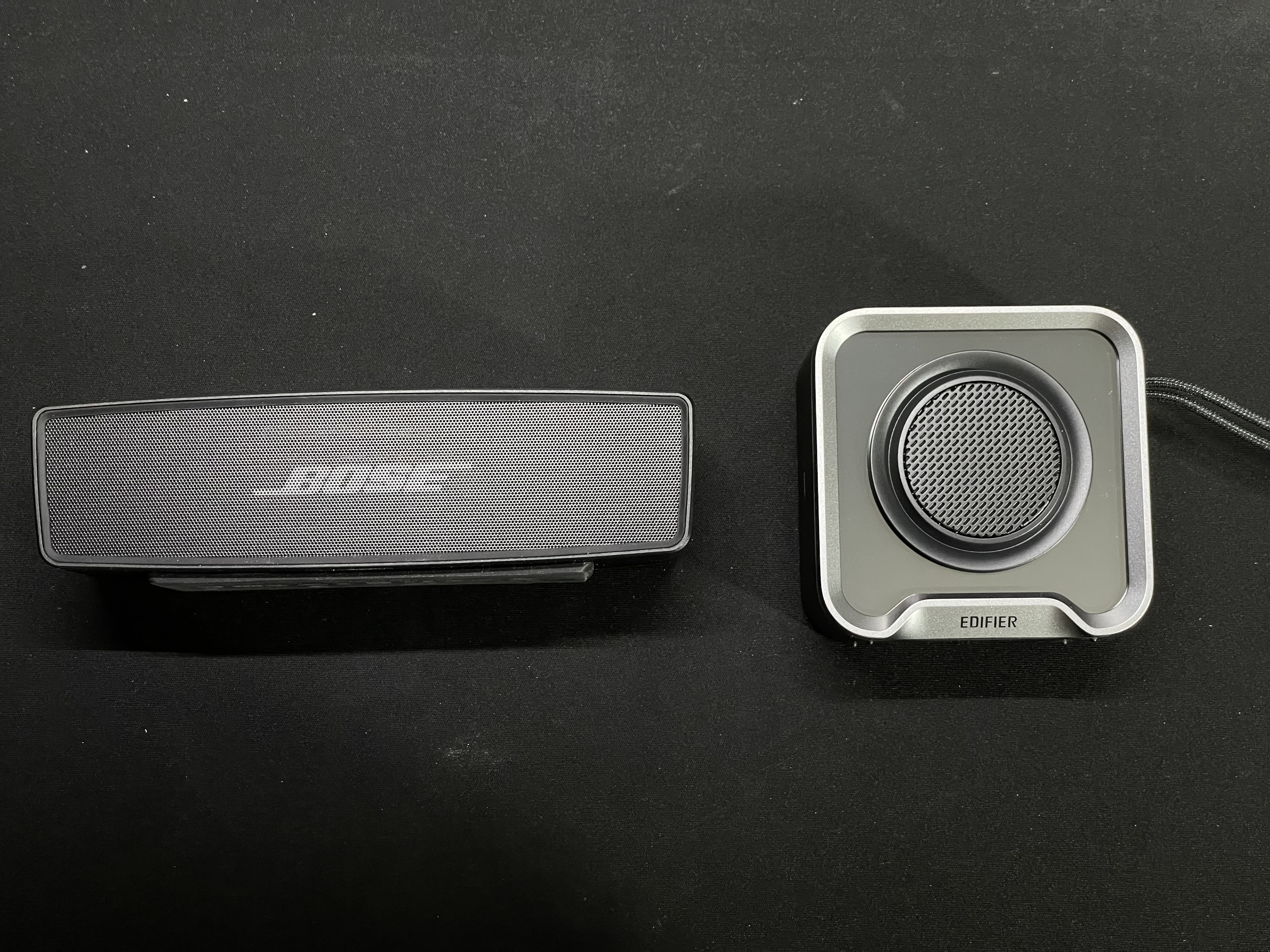 집에 보스 사운드링크 미니 2 SE 버전이 있어서 간단하게 사이즈 비교를 보았다. 두께는 비슷한 편이고 형태를 감안하면 크기 자체는 큰 차이가 안나는 느낌이다.