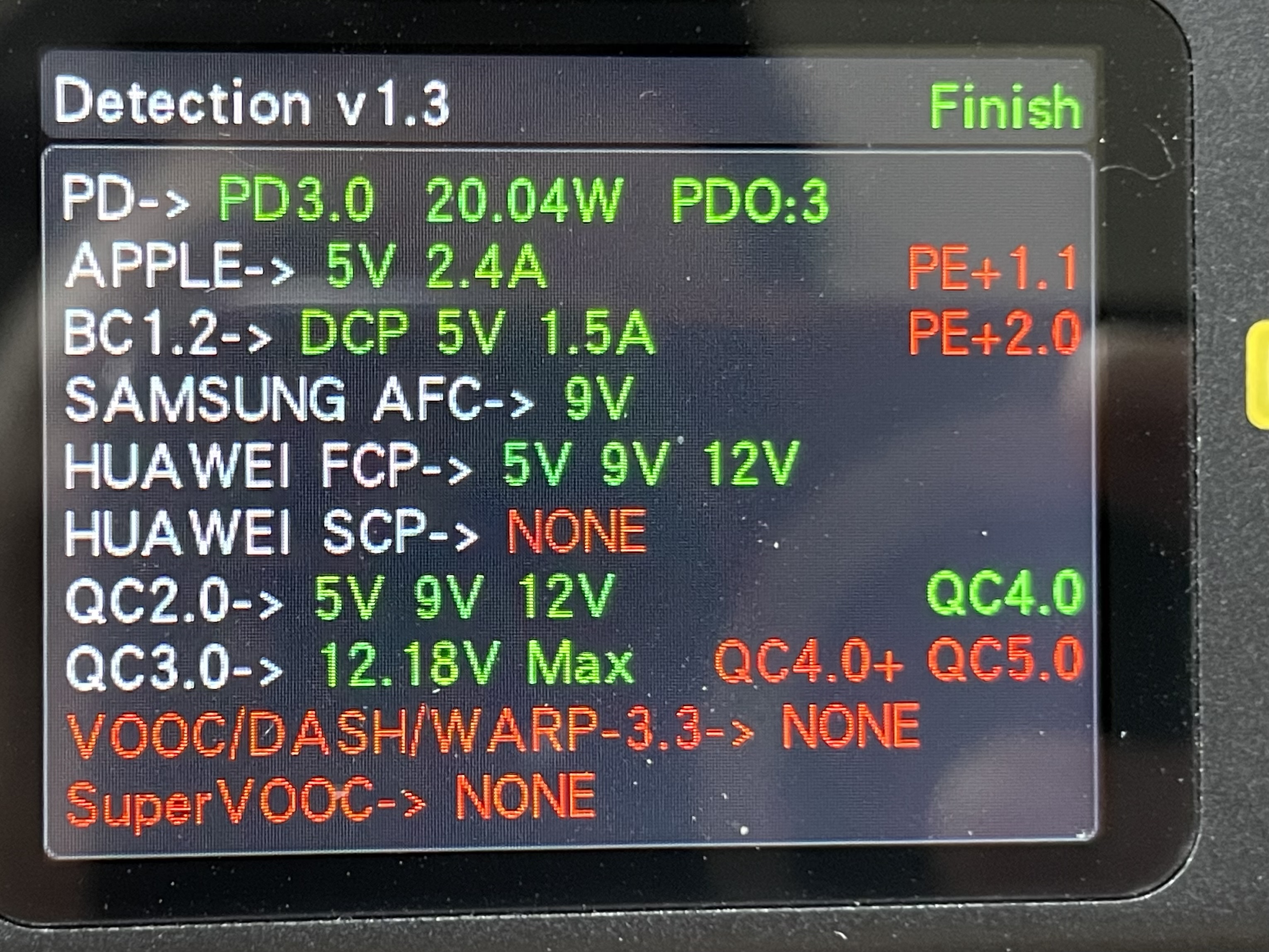 C1 포트와 C2 포트를 테스트기에 물려보았다. 20W 출력으로 확인이 된다.