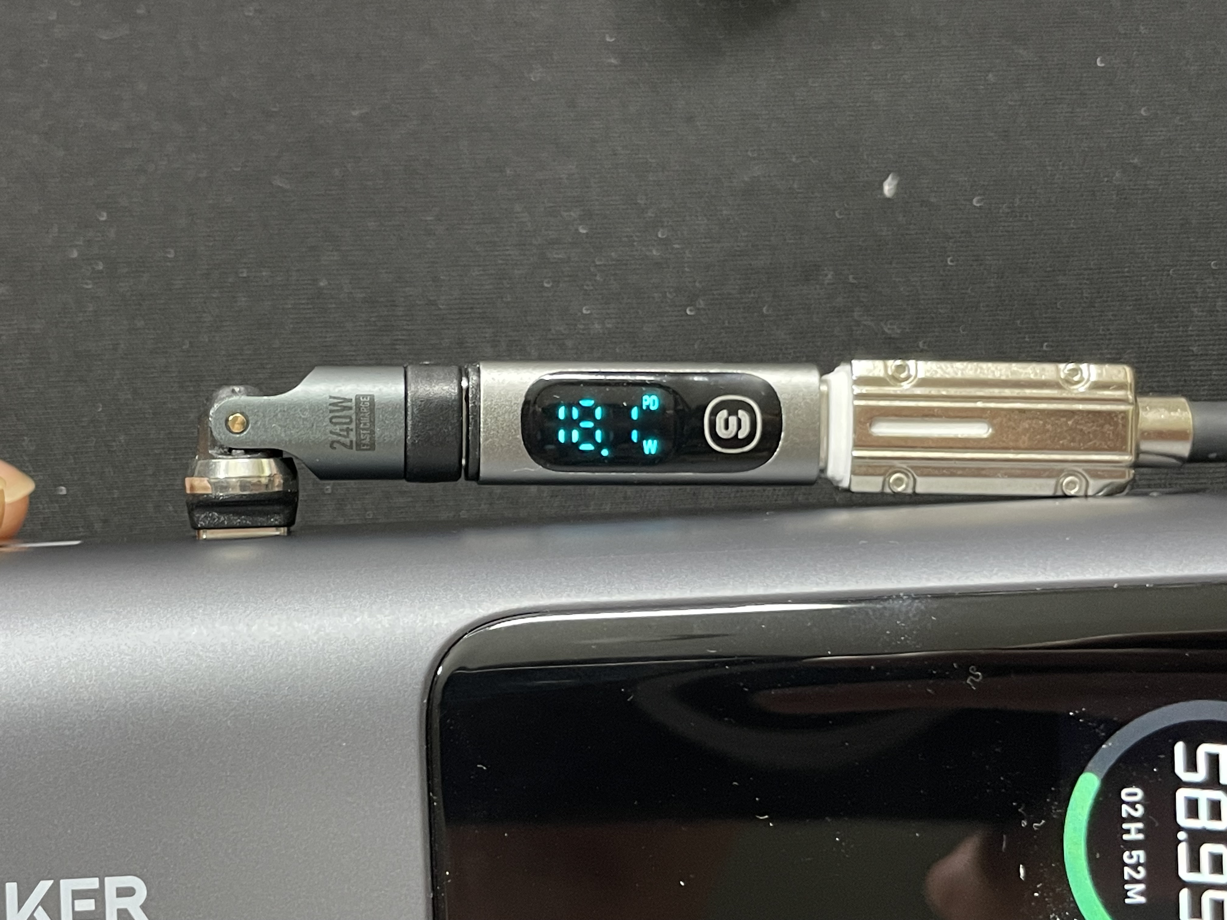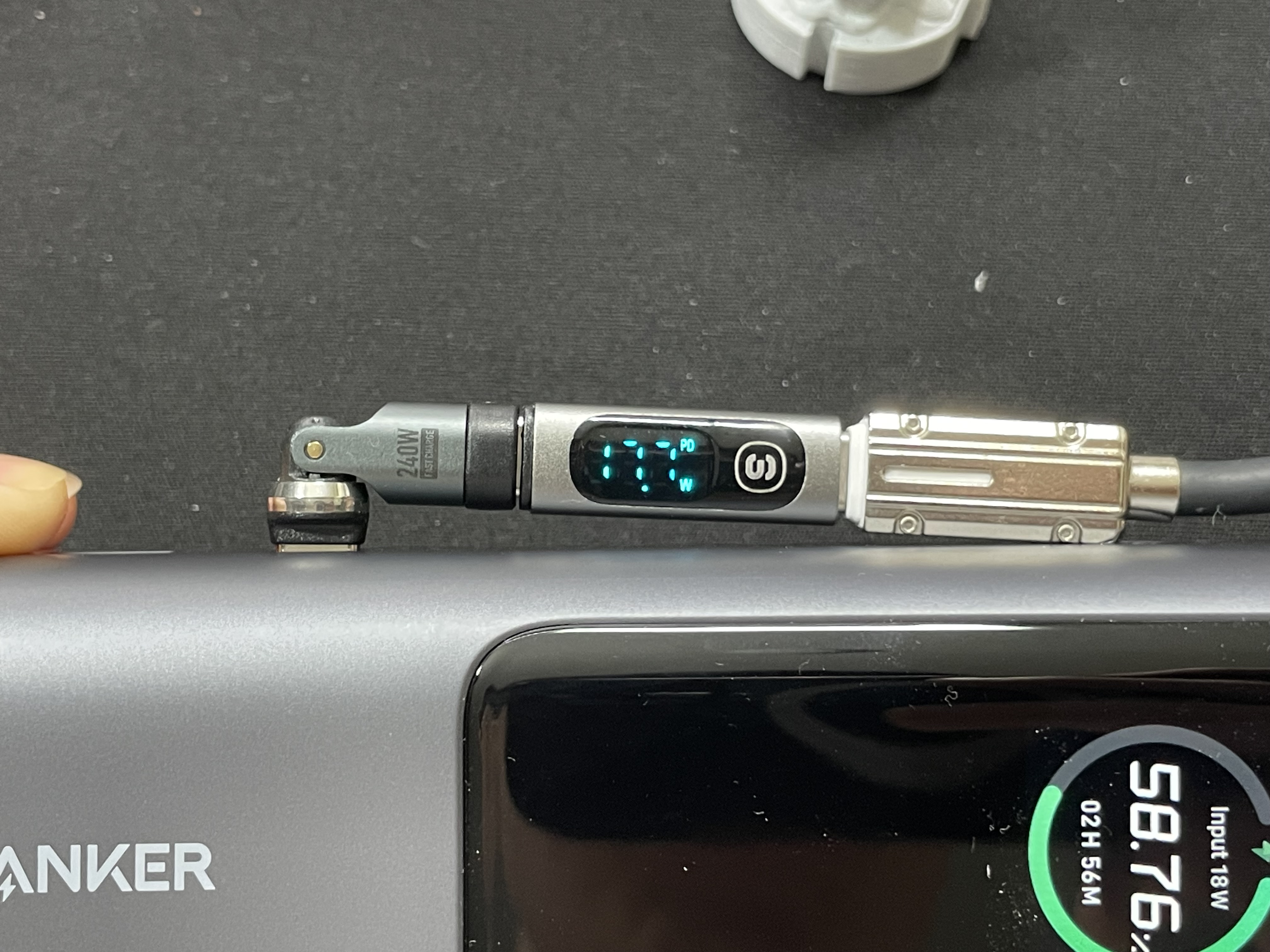 60% 정도 충전되어 있는 앤커 보조배터리를 충전해 보니 둘 다 18W 정도 출력이 나왔다.